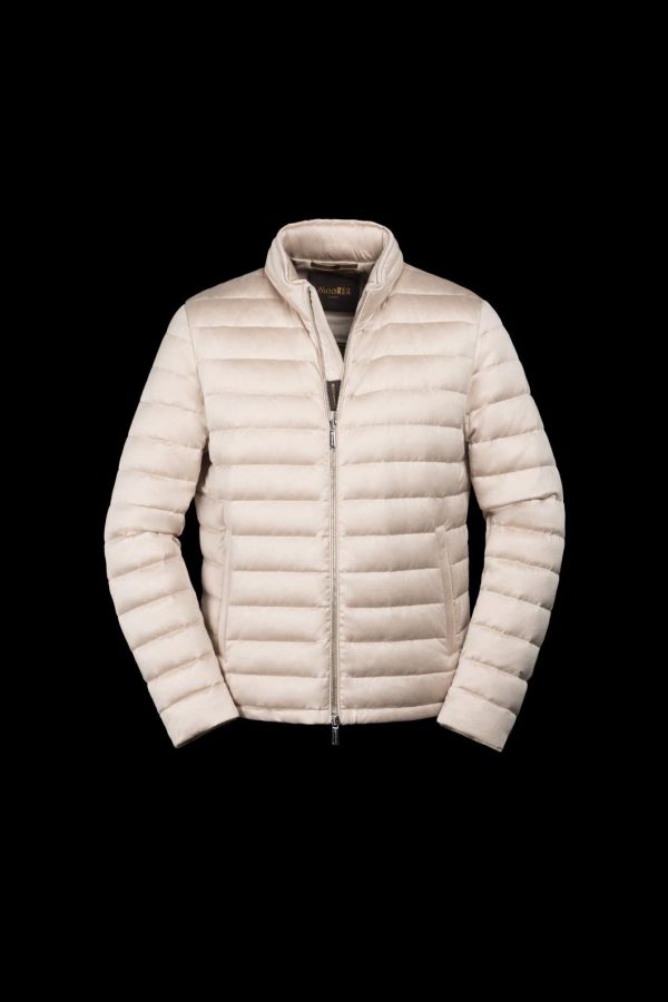Boudin quilted bomber jacket, padded with goose down. Made from mercerized cotton jersey, combining timeless elegance with impeccable comfort.