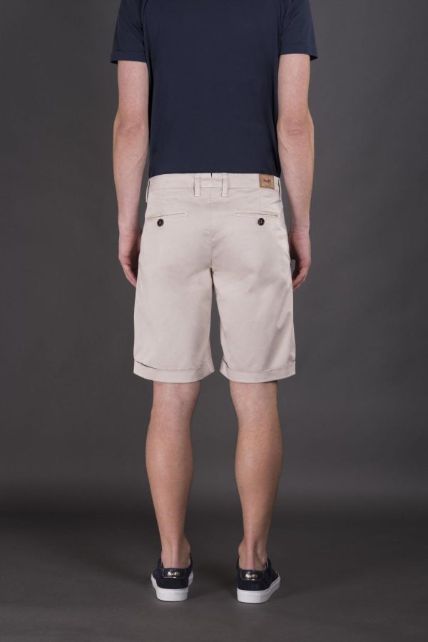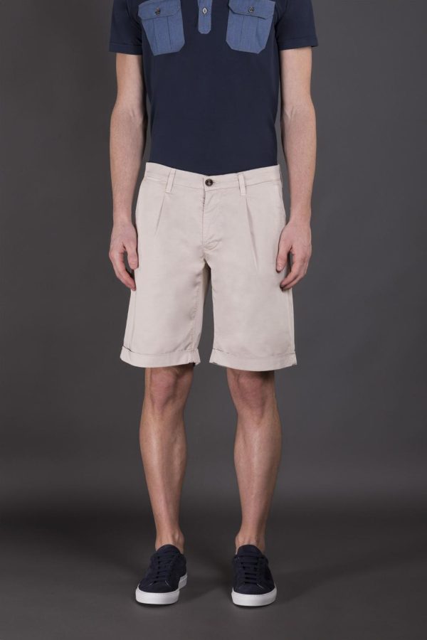 Shorts in twill of very fine stretch cotton, garment-dyed, a lightweight and soft fabric. The “Old” effect of pants dyeing creates nuances with a highly sophisticated impact, giving the garments a “used” effect and a vintage appearance.