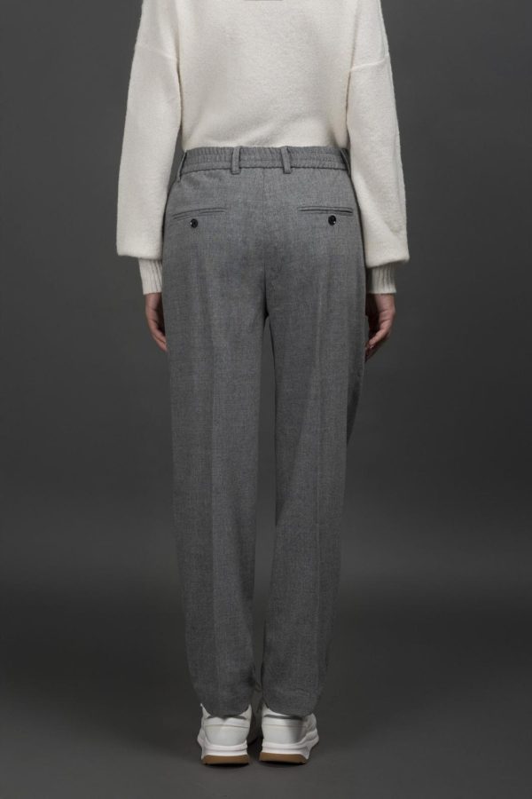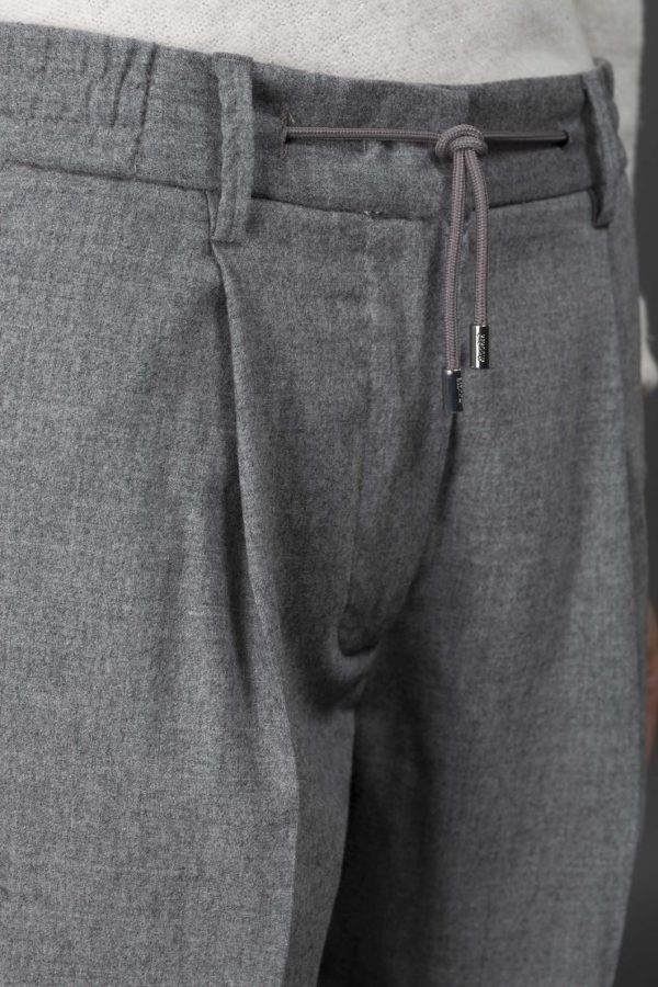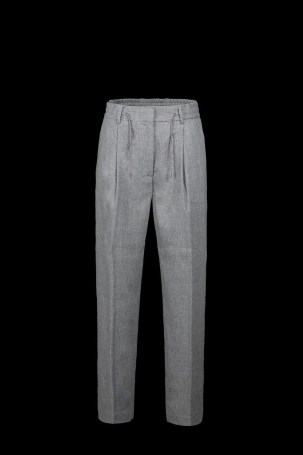 Sporty carrot-shaped silhouette pants, but interpreted in a tailored style thanks to the mélange flannel.