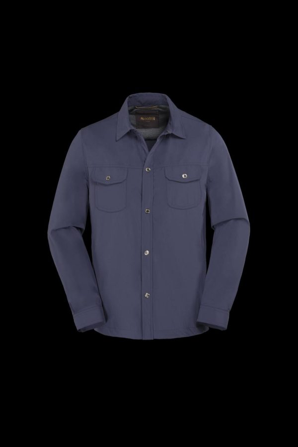 Patch chest pockets with rounded corners, closed with MooRER branded snap buttons