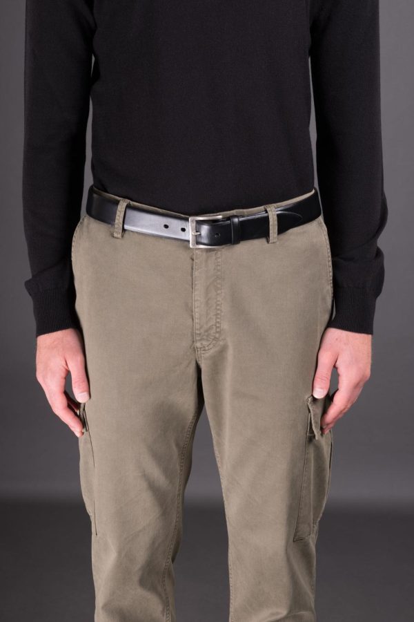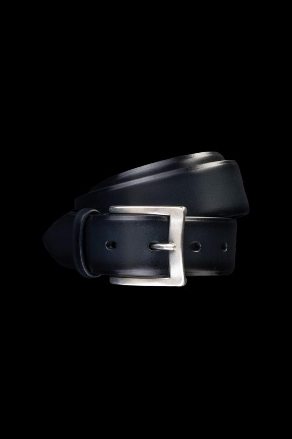Vegetable-tanned calfskin belt made through natural compounds derived from plants.This particular tanning method allows for an irregular texture that changes with use and the passage of time, enhancing the vintage inspiration of the item.