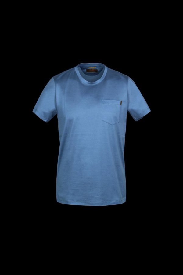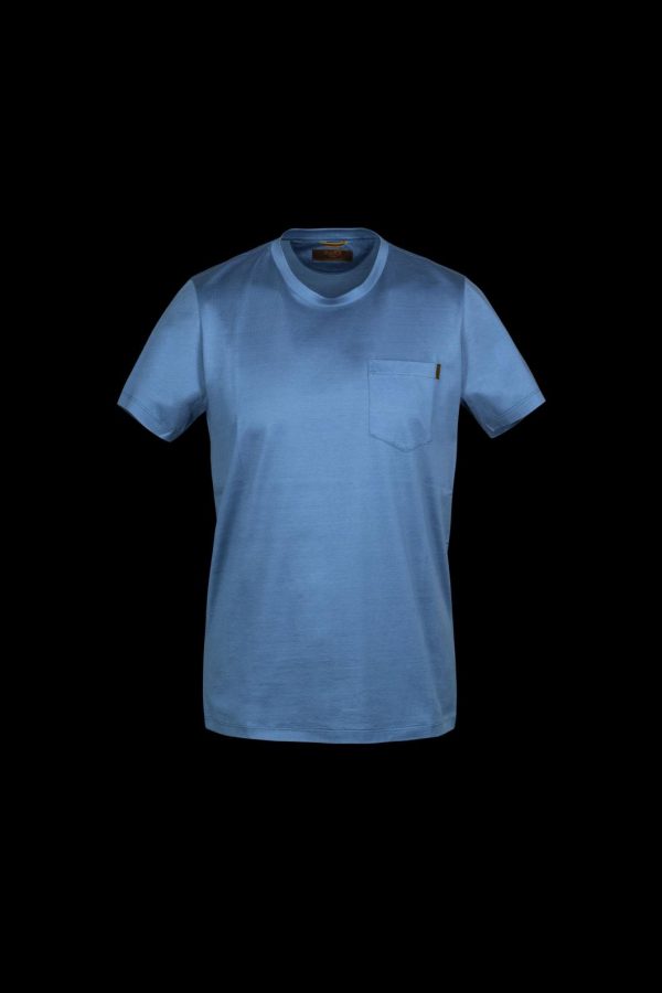 Light T-shirt made from pure Mako cotton jersey, treated to enhance its brightness, softness, silkiness, and colorfastness.