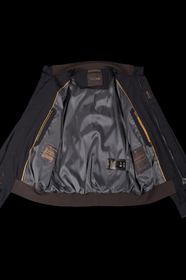 Lined bomber from the Aqua Line (1 umbrella), made of bi-elastic resin-coated water-repellent fabric, very compact and resistant to tension.