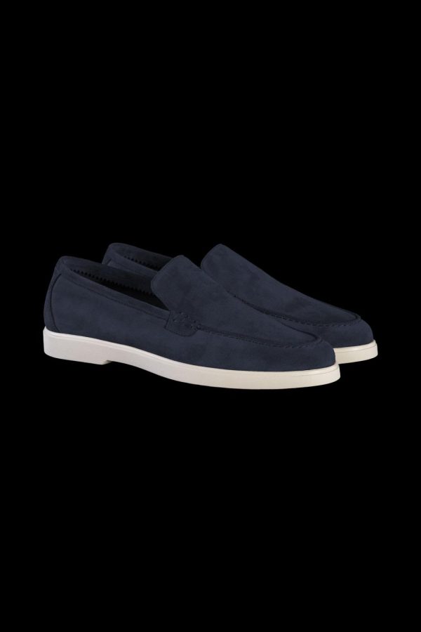 High-quality calfskin suede loafers, barrel-dyed with aniline. The velvety surface boasts a unique sheen and an extraordinarily soft touch, thanks to the special ‘writing’ effect.