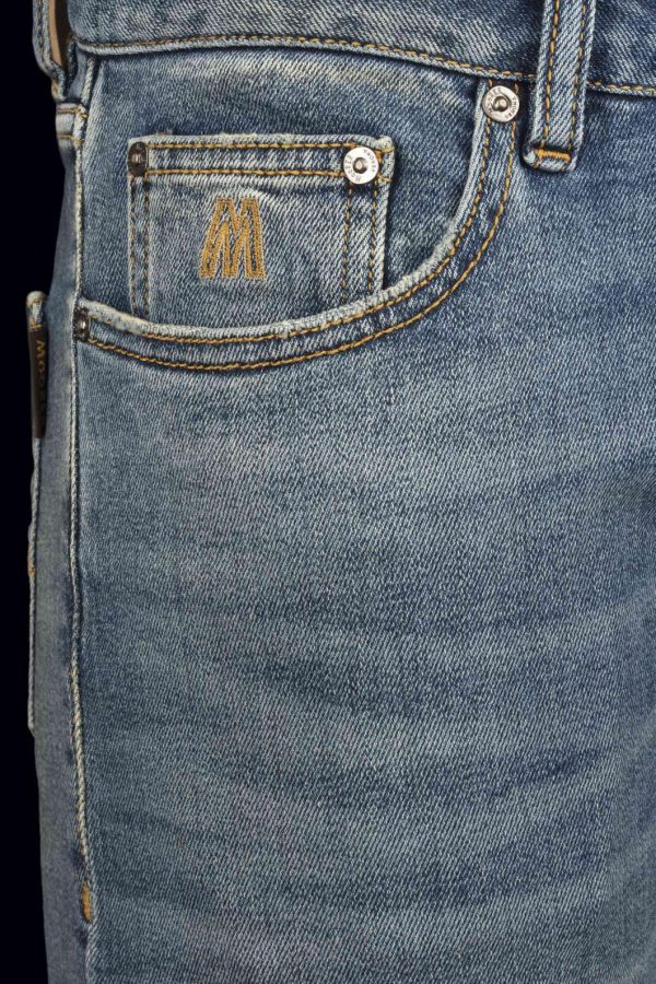 Five-pocket slim fit low rise trousers, characterized by proportions that remain close to the line of the leg, but designed to make the garment comfortable and comfortable. The metal buttons, the interior customizations and the rich embroidery, the soft leather windlass enhance its quality and personality.