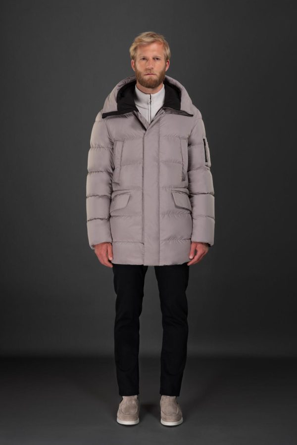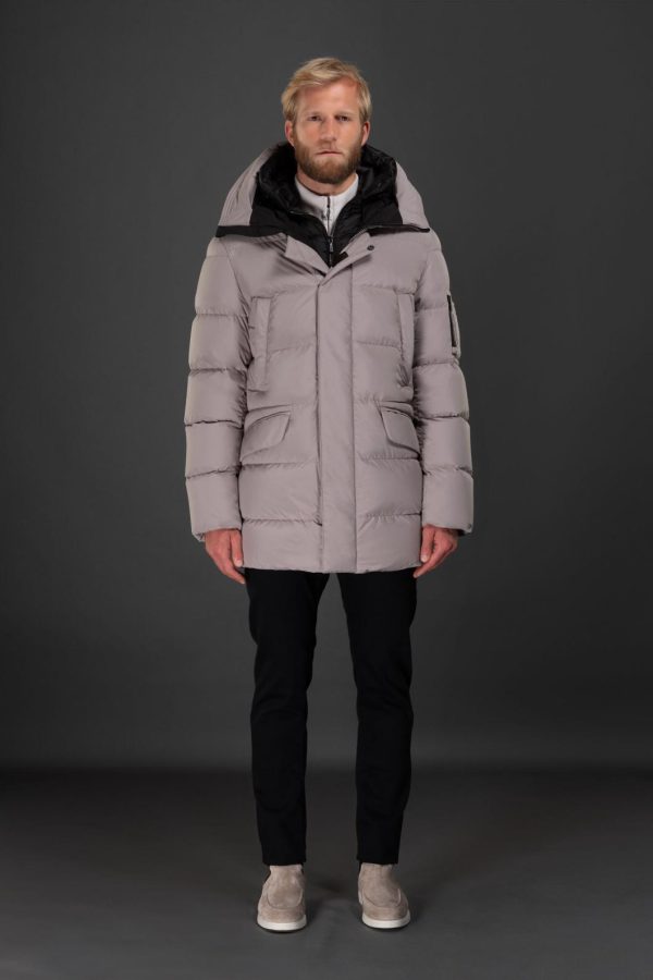 Parka from the Acqua line (2 umbrellas) in large boudin-quilt goose down.