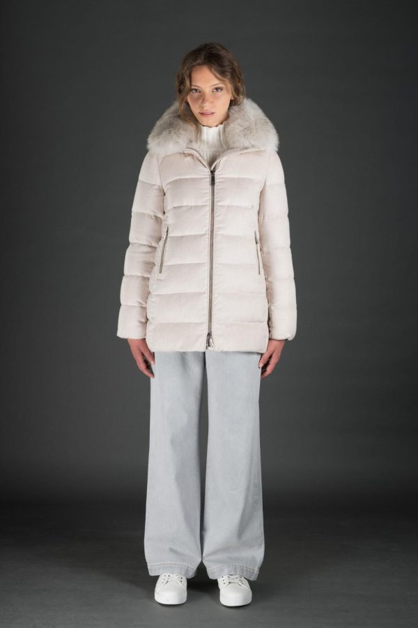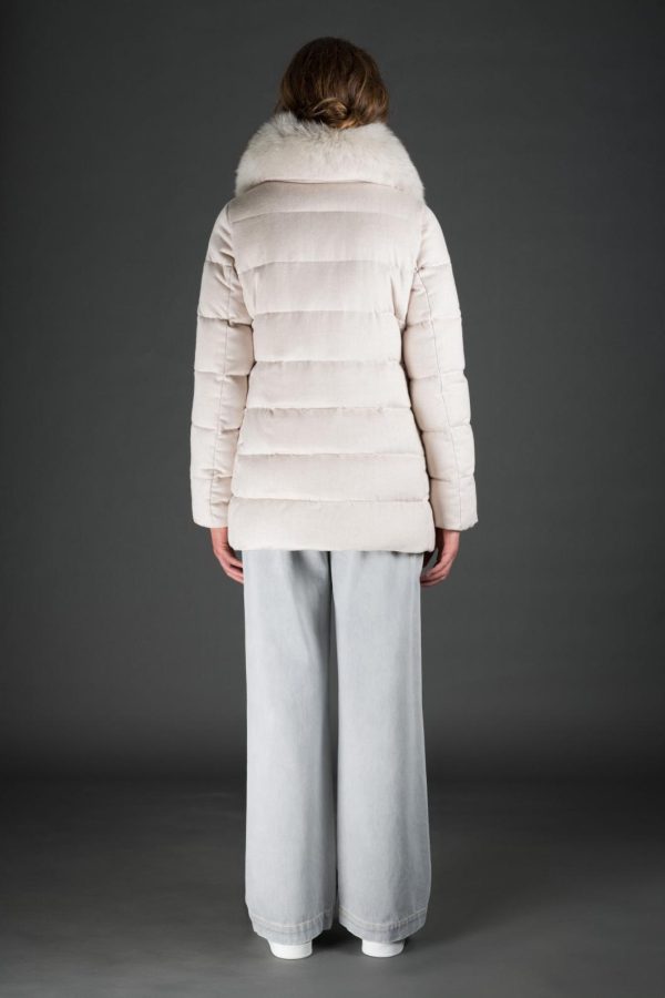 Coat with a refined trapeze line, padded with very fine goose down and quilted in boudin.