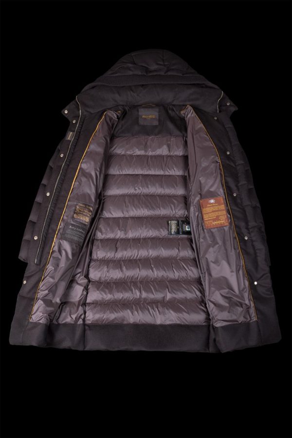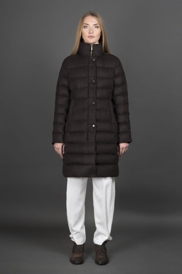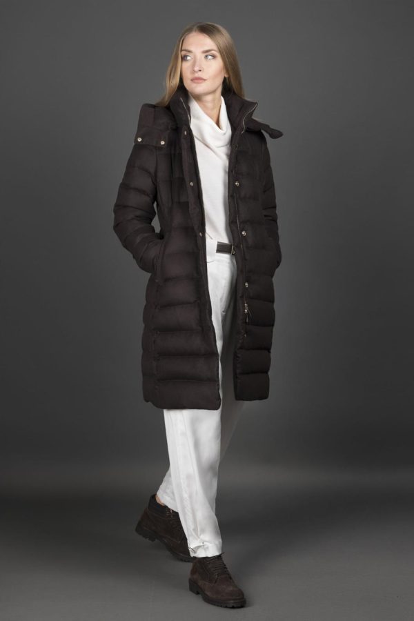 Slim “car coat” puffer jacket, a garment with a formal attitude, given a sporty touch by modern details. Padded with the finest goose down and boudin quilted.