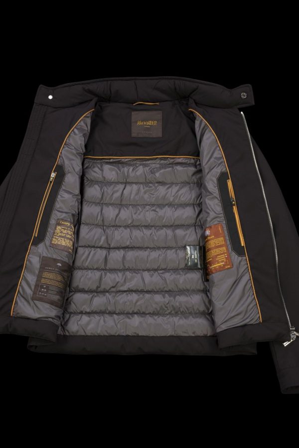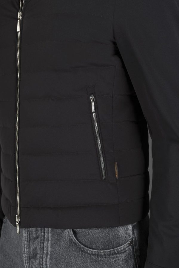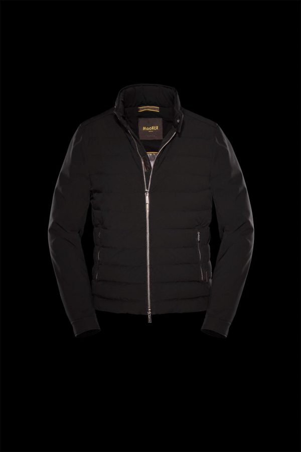 Blouson belonging to the Acqua line (1 umbrella), with smooth sleeves padded with thermal wadding and a body padded with goose down and quilted in boudin. Made of waterproof coated bi-elastic fabric, very compact and resistant to traction.