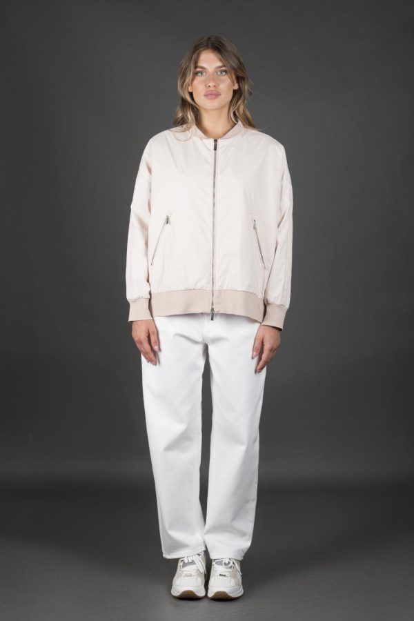 Smooth jacket from the Aqua Line (2 umbrellas). Lightly padded with goose down and made of technical fabric with waterproof membrane.