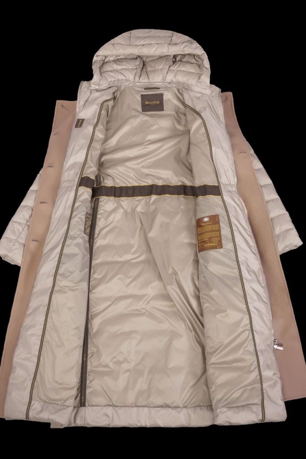 Inside, a practical down jacket filled with ultrafine goose down and boudin quilted, made of super-lightweight, silky, down-proof nylon.