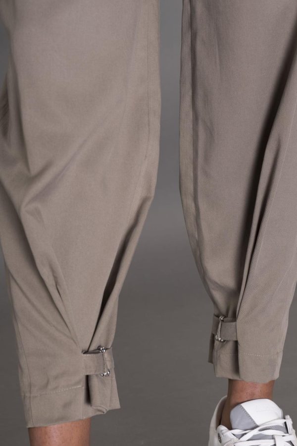 Metal buckled belt loops at the bottom of the leg, personalized with the exclusive MooRER design