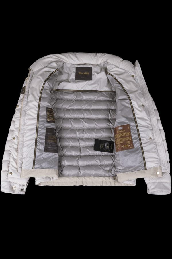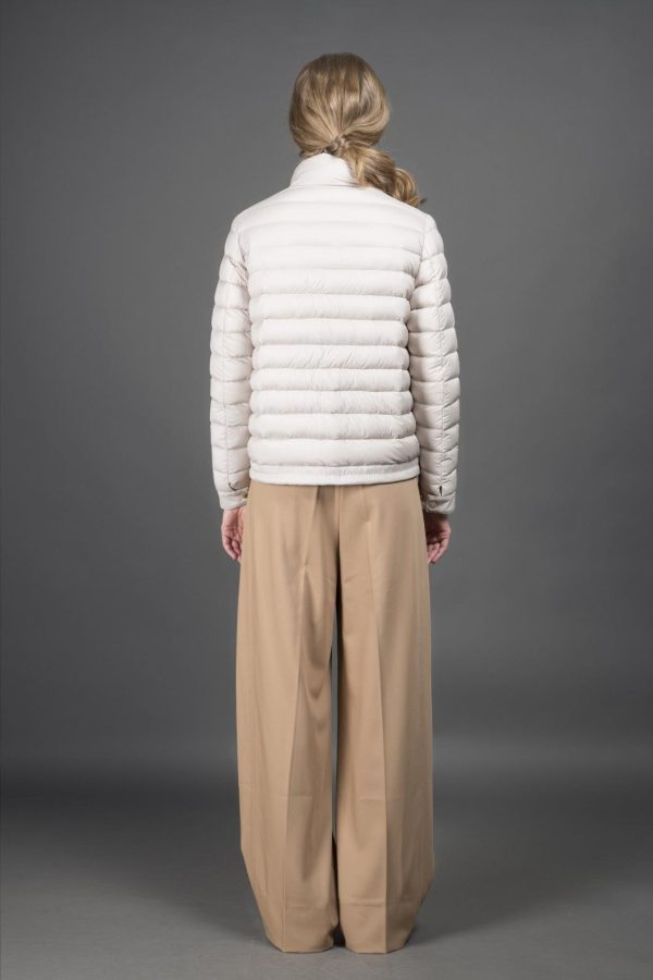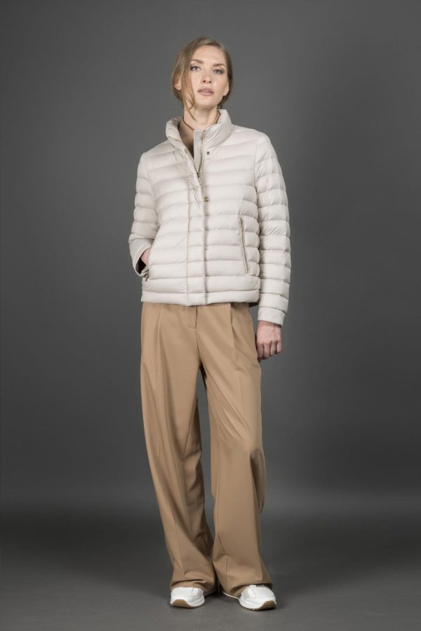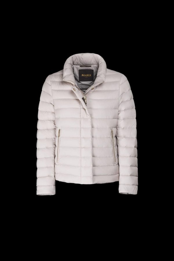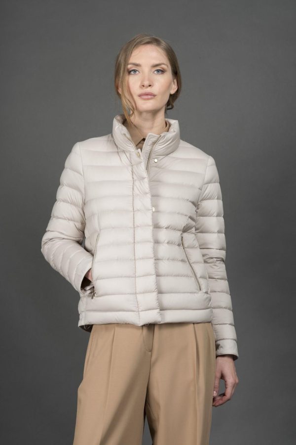 Short puffer jacket with a slim cut, belonging to the Acqua line (1 umbrella). Padded with pure goose down and boudin quilted, it is made from ultra-lightweight, matte down-proof fabric with an appearance similar to silk-like fabrics, with a subtle surface crumple effect that gives the garment its unique character.