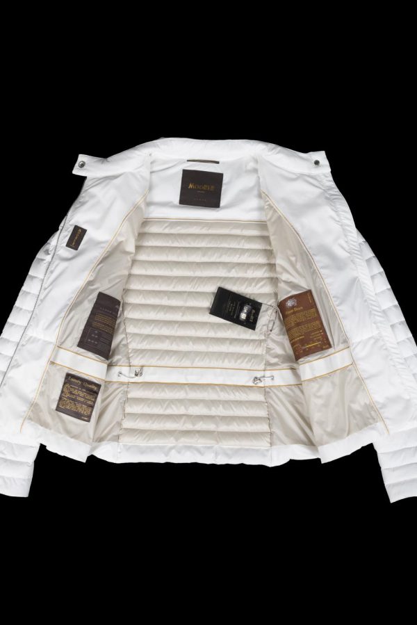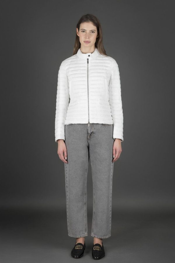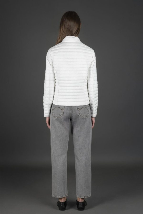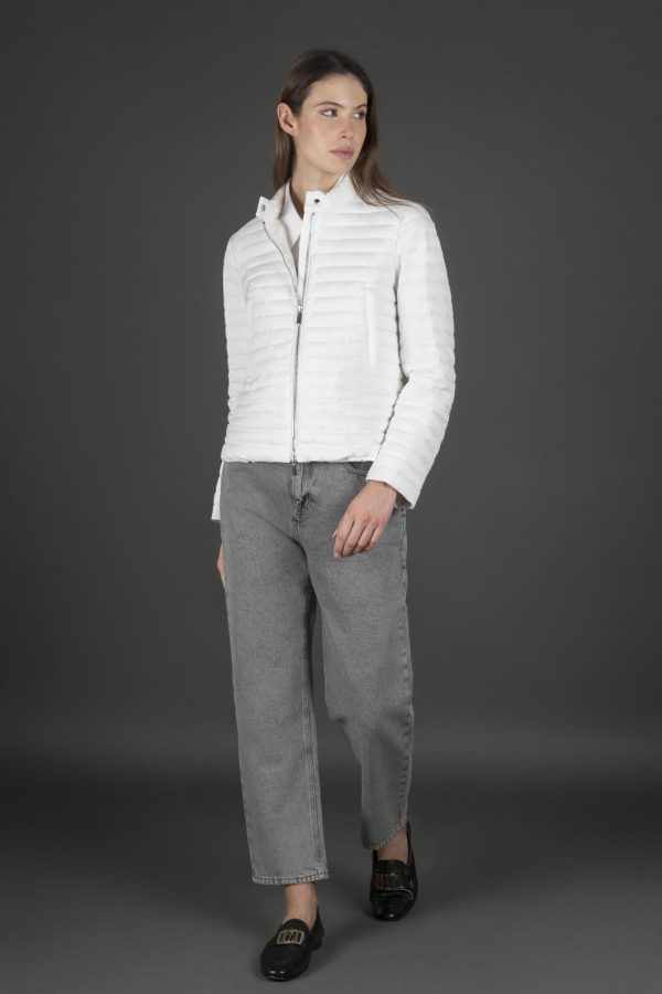 Short puffer jacket with a dynamic fit, belonging to the Acqua line (1 umbrella). Padded with goose down and boudin quilted, it is made of ultra-light down-proof matte nylon, with a silk-like appearance and subtle creases on the surface that give the garment a unique character.