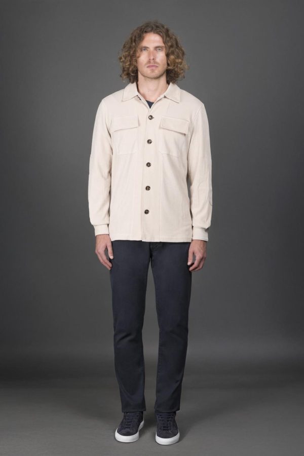 Modern and versatile overshirt made of soft ribbed velvet jersey 500 lines in fine stretch cotton.