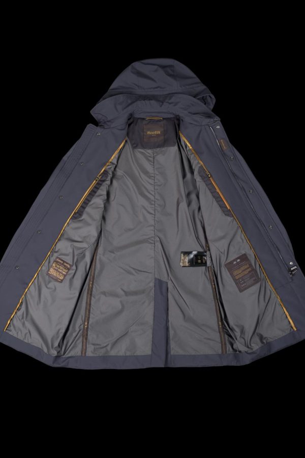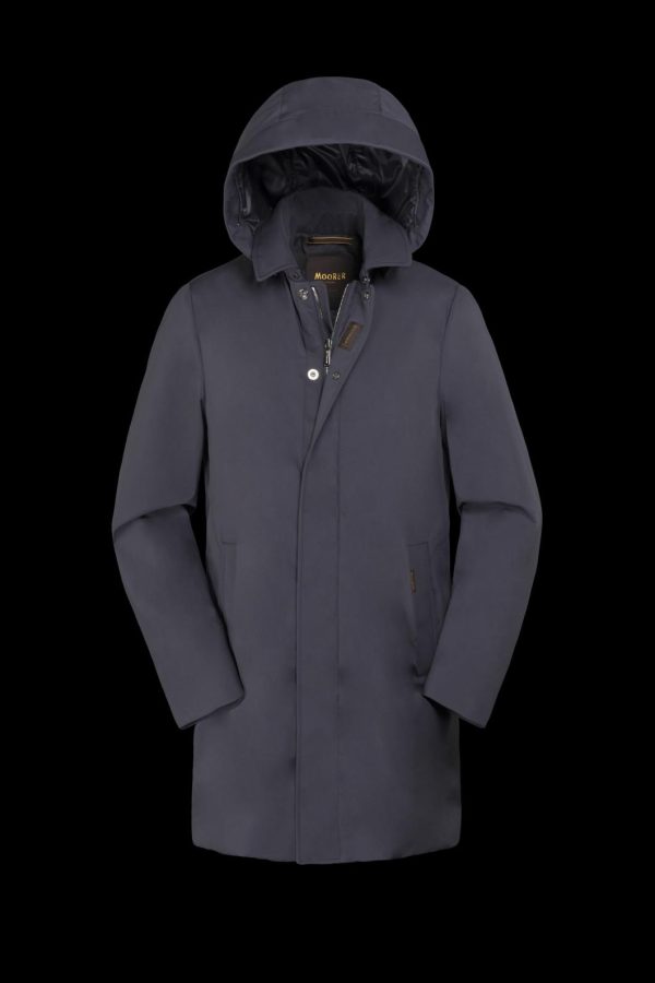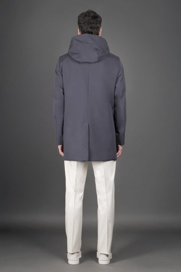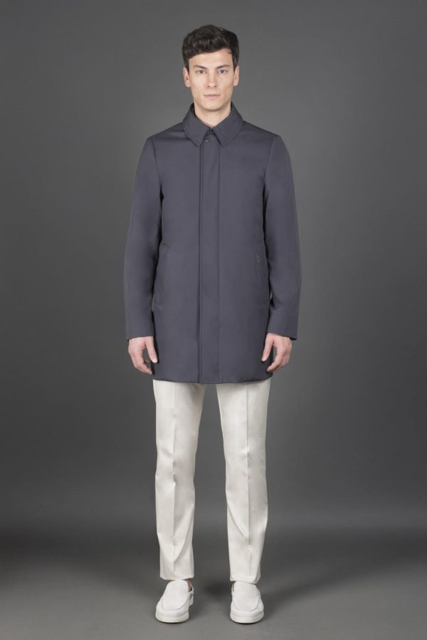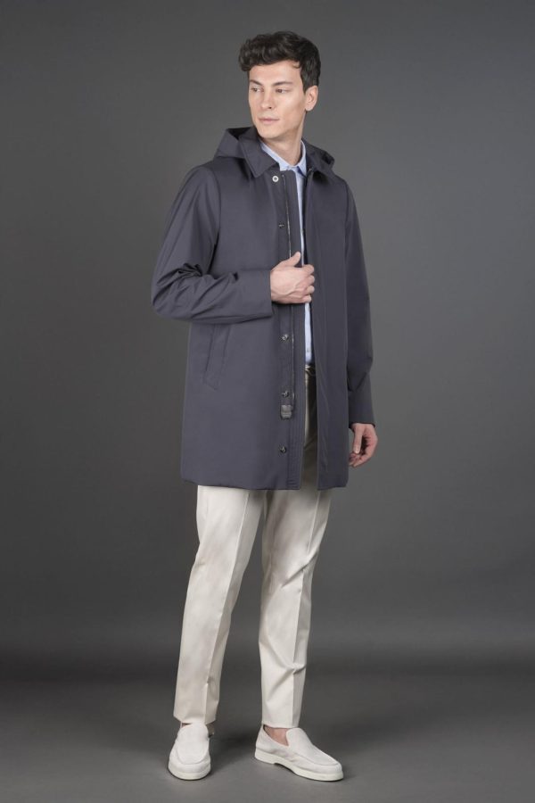 Elegant smooth duster from the Aqua Line (2 umbrellas). Made of super lightweight, opaque, water-repellent resin-coated technical fabric.