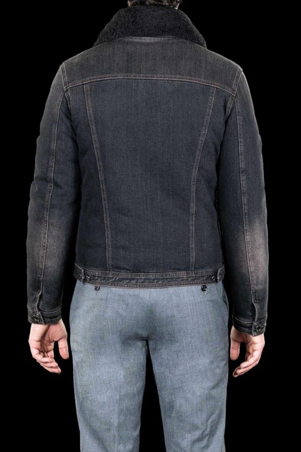Length 63 cm. Garment-washed jacket made in denim and padded in goose feather. Embellished with detachable fur. Front fastening with stud buttons and buttonholes. Flap pockets on the chest and vertical pockets on the sides. Quilted interior with handy pockets for valuables. Fabric composition: Japanese selvedge denim with a luxury handfeel, produced on traditional looms that require a slow, artisan weaving process. The fabric features some imperfections that are its part of its uniqueness and give the material its prestige and character. Composition: 98% cotton + 2% PA. The fabric of this garment has been dyed with fine natural indigo without chemical fixers. For the first period of use, we recommend not wearing the trousers with light coloured garments and avoiding contact with light-coloured surfaces. The natural dye of this garment gives an appeal that no chemical dye can ever have. Wash separately. This model has a tight fit. MooRER recommends to choose one size up compared to your usual size choice.