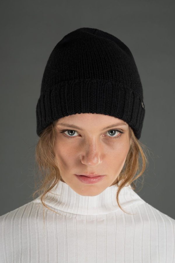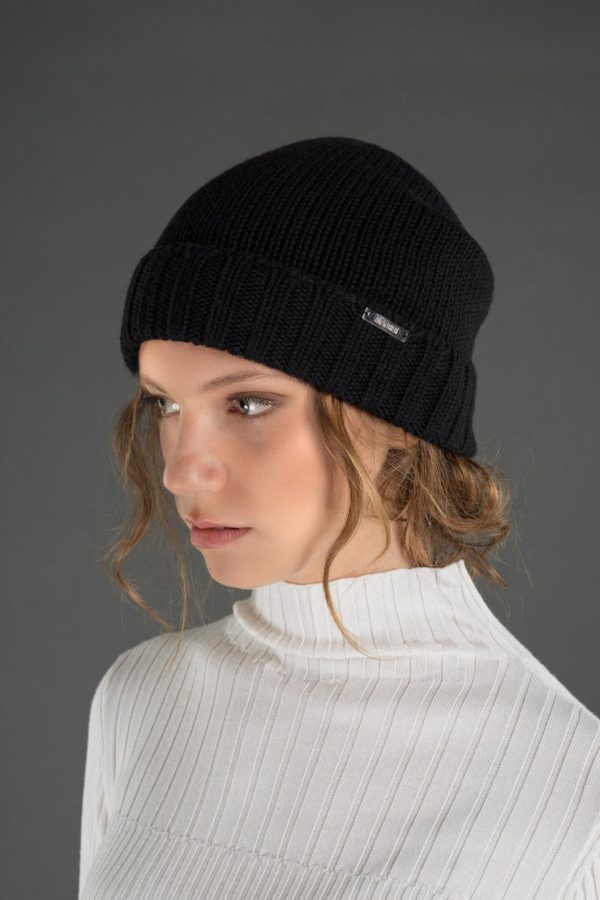 Plain knit beanie made of 3-gauge extra-fine soft merino wool.