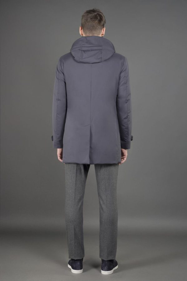 Elegant smooth coat belonging to the Acqua line (2 umbrellas). Lightly padded with goose down and made of super lightweight, matte, water-repellent and down-proof technical fabric.