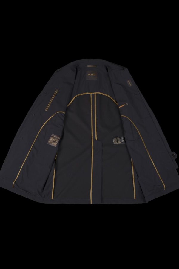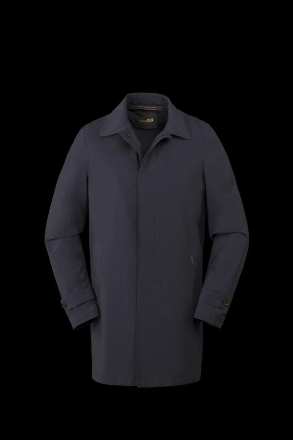 Elegant and refined jacket-cover made of water-repellent bi-elastic resin-coated fabric.